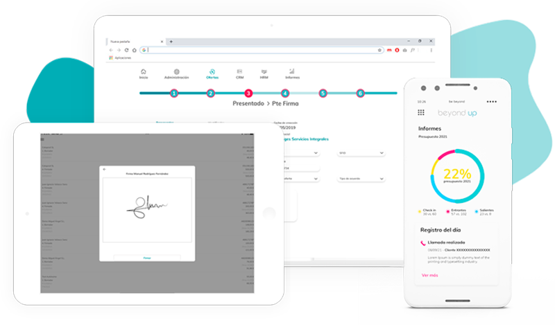 ¡beyond up CRM es tu mejor socio! Gestiona el ciclo de vida completo de tus clientes y objetivos de tu empresa, desde la oportunidad hasta la facturación. Estés donde estés, cuándo y cómo tú quieras.